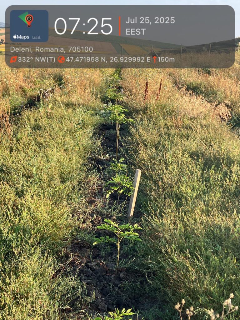 Obiective proiectului: Proiectul de împădurire propune realizarea unei plantații forestiere pe o suprafață de 11,4918 ha, pe raza U.A.T Deleni, județul Iasi, cu puieți forestieri din speciile: 50Go 20Fr 20 Pa 10 Ci. Perioada de realizare a investiției este de 20 ani și cuprinde lucrări de pregătire a terenului si imprejmuire, plantarea puieților forestieri și lucrări de îngrijire a acestora. Prin atingerea stării de masiv, plantația forestieră contribuie la sechestrarea carbonului în contextul schimbărilor climatice, cât și ca element de biodiversitate – habitate de hrănire, adăpost și hrană pentru diferite specii de păsări și mamifere.